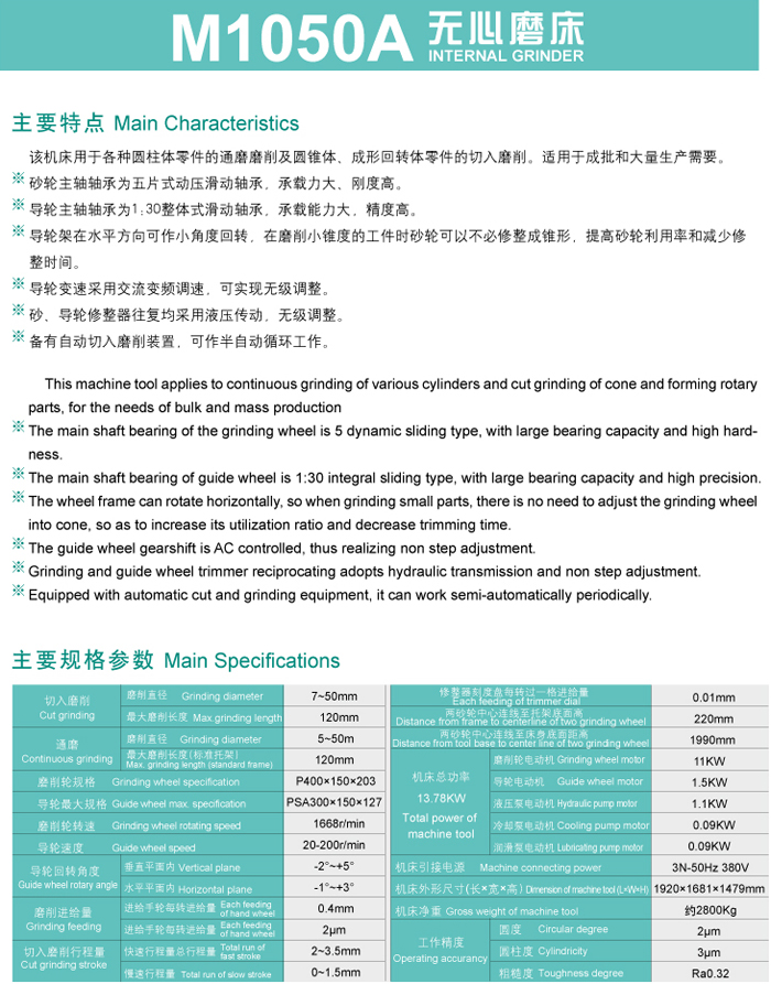 M1050A 無心磨床